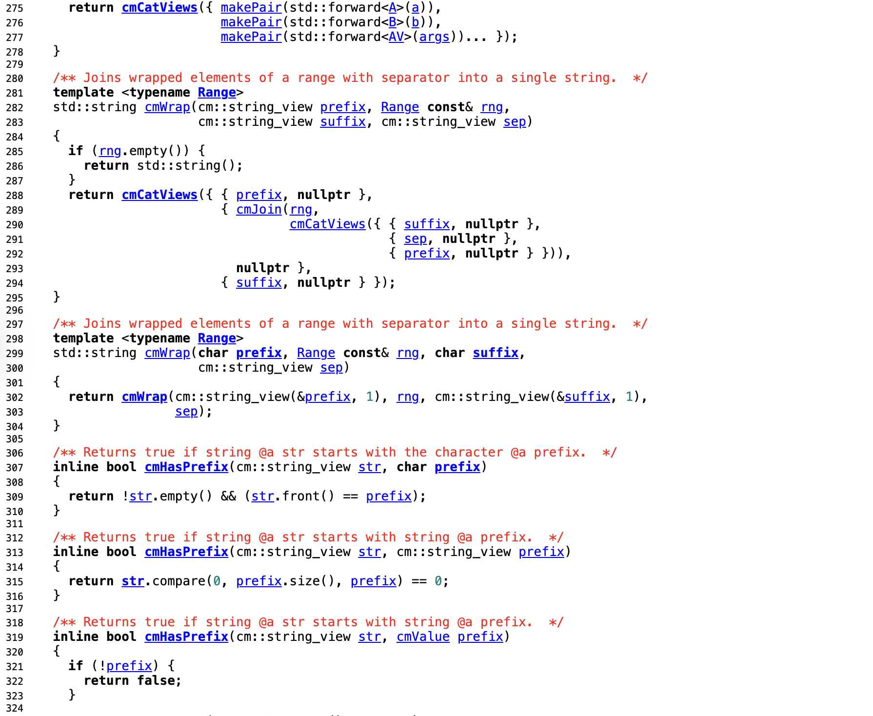 Clicking on any of the blue or purple links in an html report will take you to the relevant location in the source code. For example, selecting the 'use' reference under template parameter A takes me here: